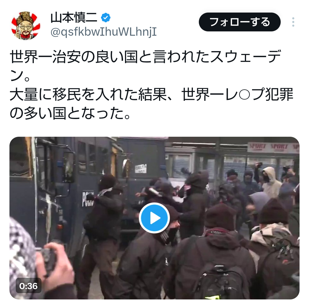 【治安】 世界一治安の良い国だったスウェーデンの末路