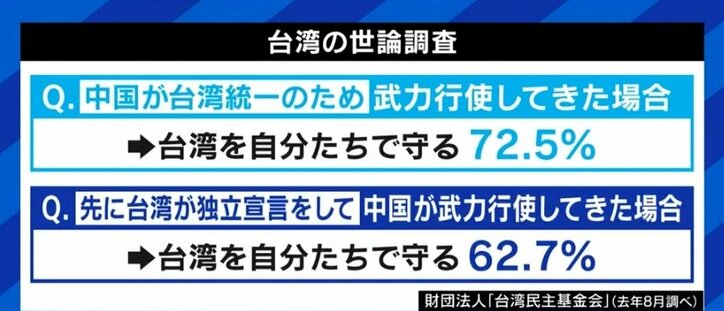 | 台湾の世論調査「アメリカは台湾を中国大陸の武力攻撃から守ってくれるか」――ウクライナ戦争による影響(遠藤誉) - 個人 - Yahoo!ニュース - Yahoo!ニュース 台湾の世論調査「アメリカは台湾を中国大陸の武力攻撃から守ってくれるか」――ウクライナ戦争による影響(遠藤誉) - 個人 - Yahoo!ニュース Yahoo!ニュース (出典:Yahoo!ニュース) |